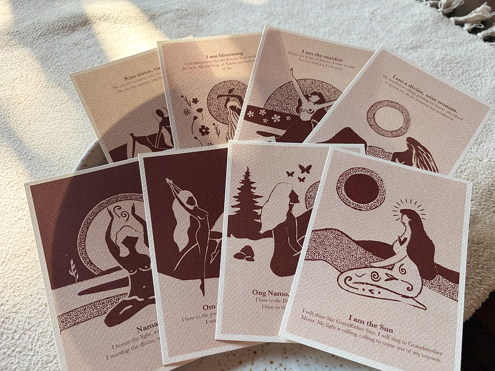 Online support is as much appreciated as offline support. Do you have a proactive group of followers on your socials, or would you like to bring my cards to your students or participants during your weekly yoga class, women's circles or retreats?